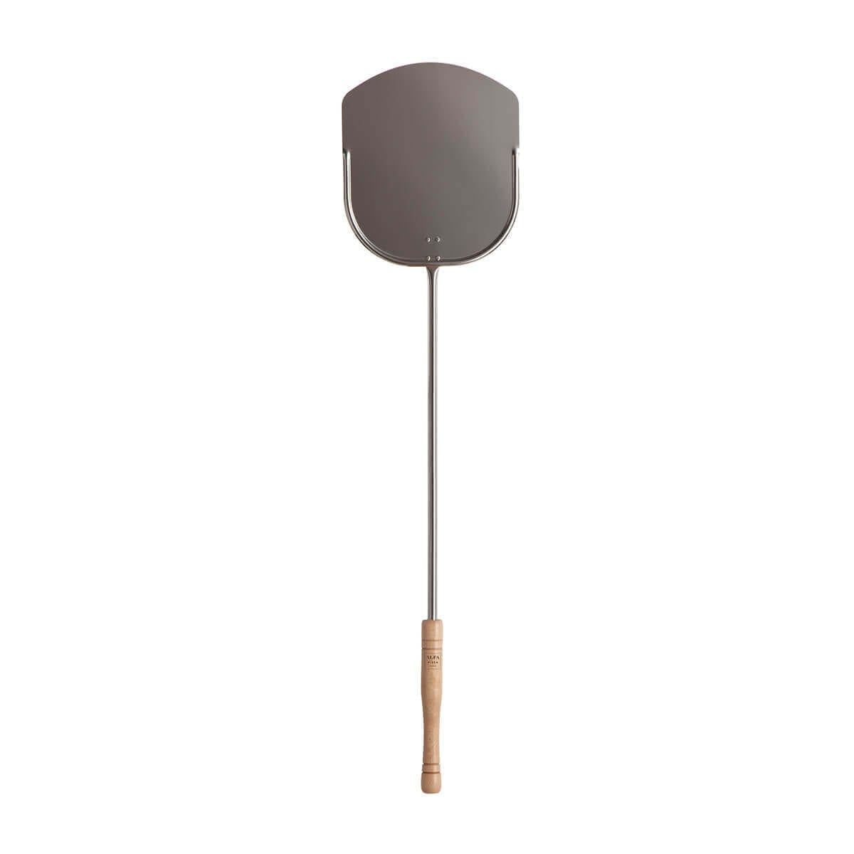 - The pizza shovel, with its wooden handle and brushed stainless steel structure, guarantees robustness, cleanliness and handling. Its rounded edge makes it easy to place the pizza in the oven.